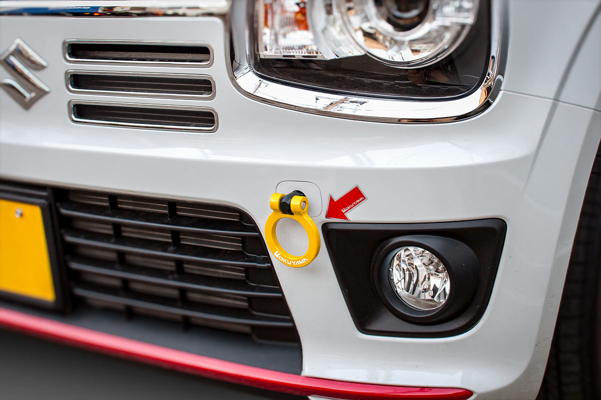 スズキ アルト ターボRS/ワークス HA36S フリップアップトーイングフック フロント /イエロー
