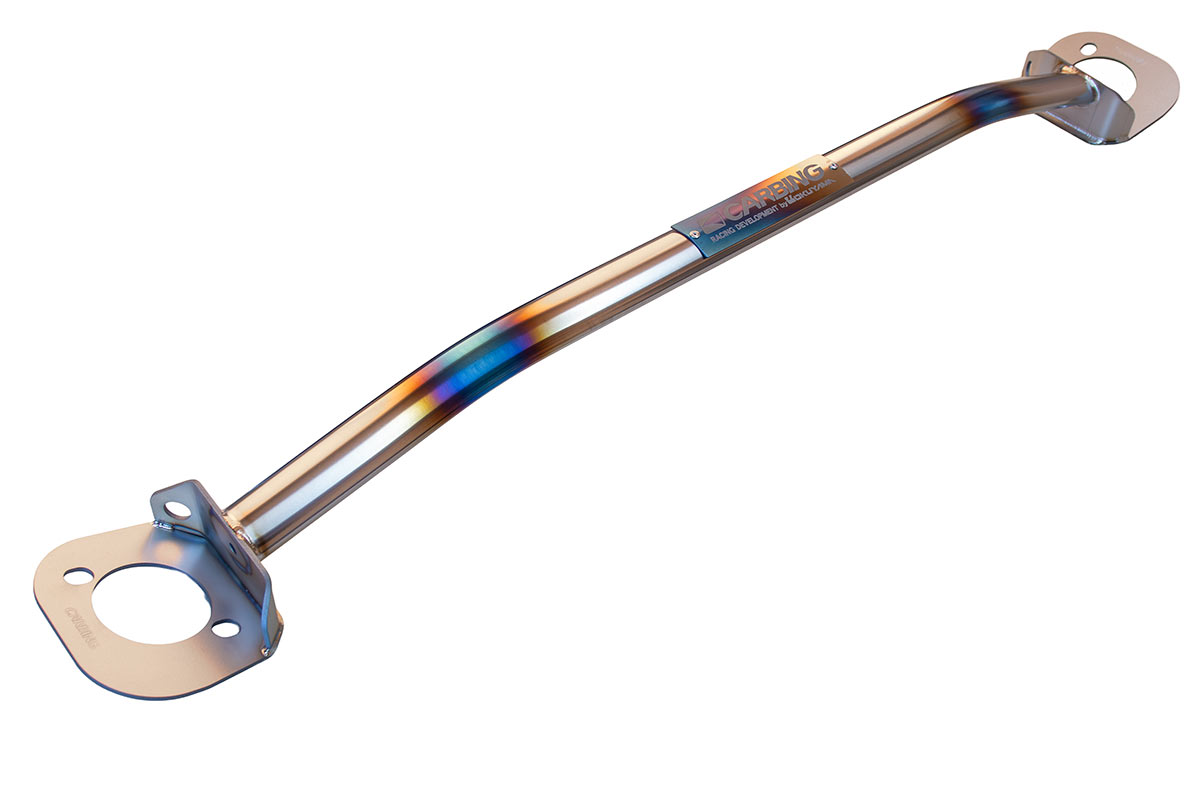 左右のサスペンション上部取付け部をストラットタワーバーで結ぶ事により、ボディ剛性を高めサスペンション本来の仕事をさせる事ができ、またコーナリング時発生するボディのねじれを抑えハンドリングやスタビリティが向上します。