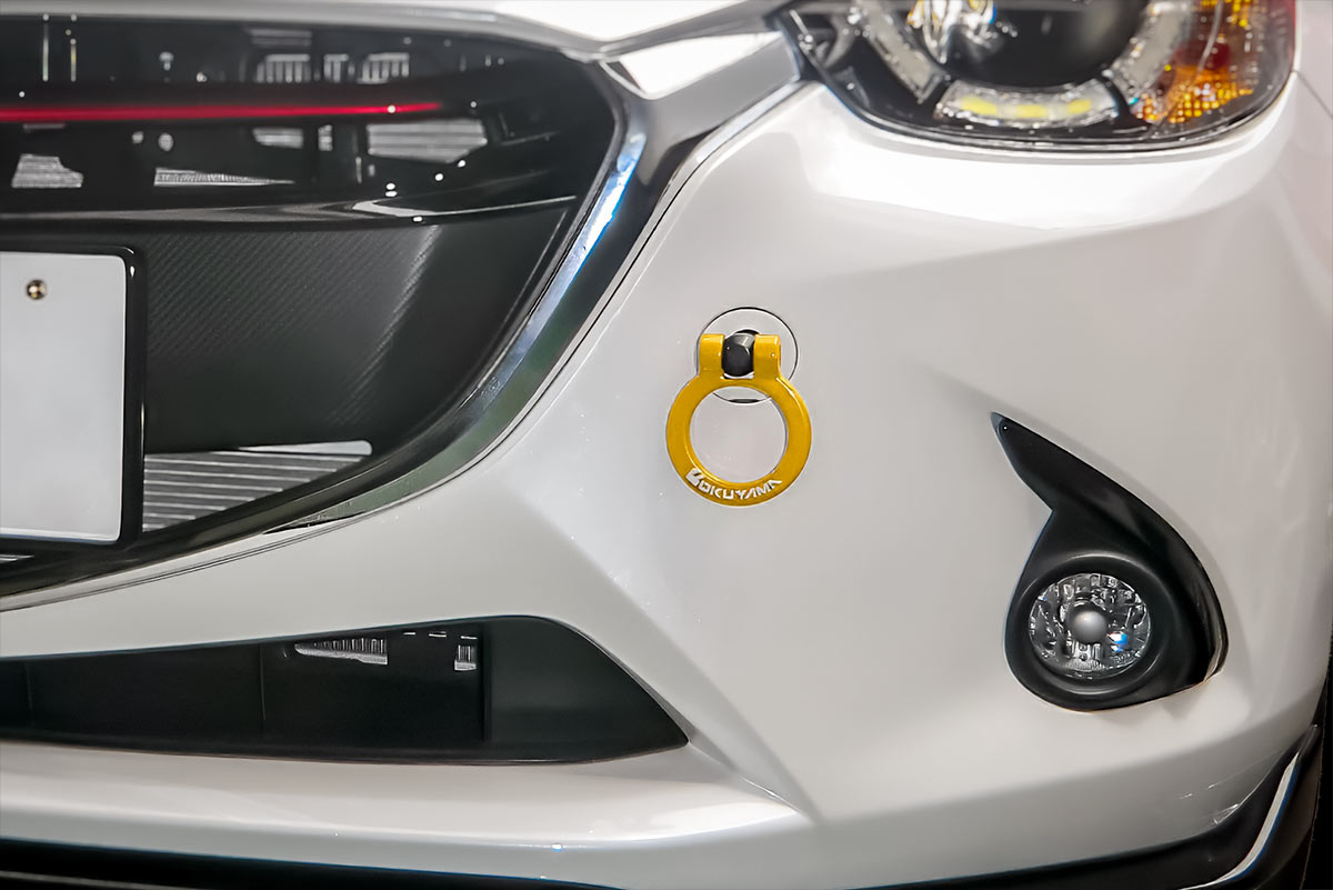 マツダ デミオ(DJ5FS/DJLFS)フロント / ロードスター(NCEC)フロント&リア(共通) フリップアップトーイングフック /イエロー