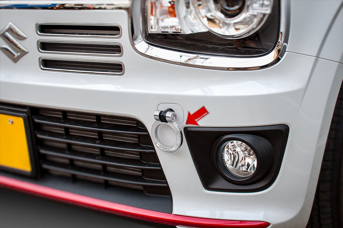 スズキ アルト ターボRS/ワークス HA36S フリップアップトーイングフック フロント /シルバー