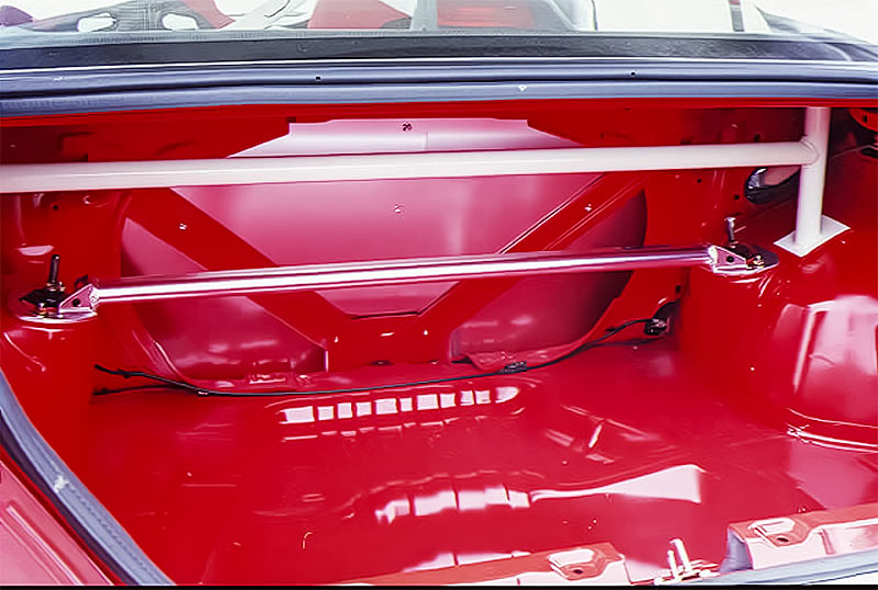 ・左右のサスペンション上部取付け部をストラットタワーバーで結ぶ事により、ボディ剛性を高めサスペンション本来の仕事をさせる事ができ、またコーナリング時発生するボディのねじれを抑えハンドリングやスタビリティが向上します。