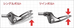 オクヤマはジョイント部のボルトをツインボルト(2本)とすることで、溶接ジョイントの高剛性と同等の強度を得ることに成功しました。